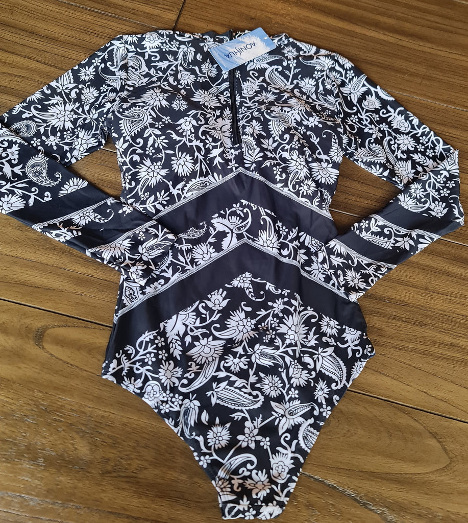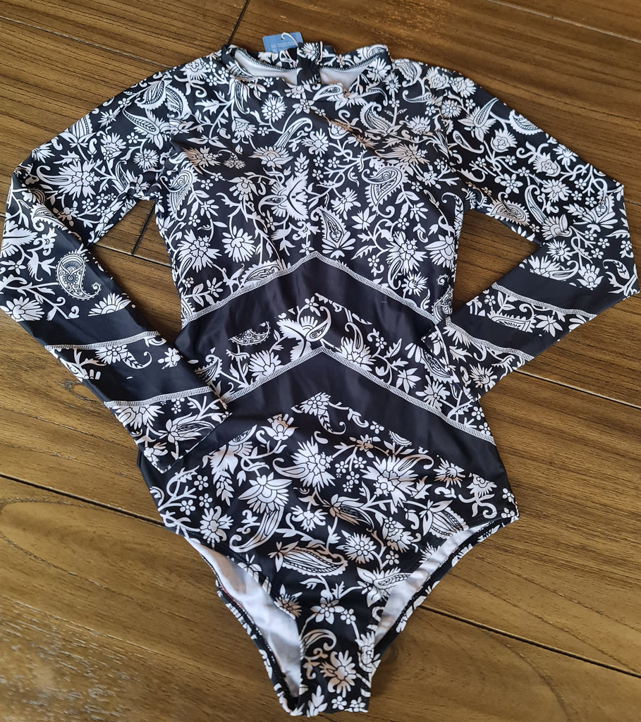 Traje De Baño Completo Entero Manga Larga Importado Floral