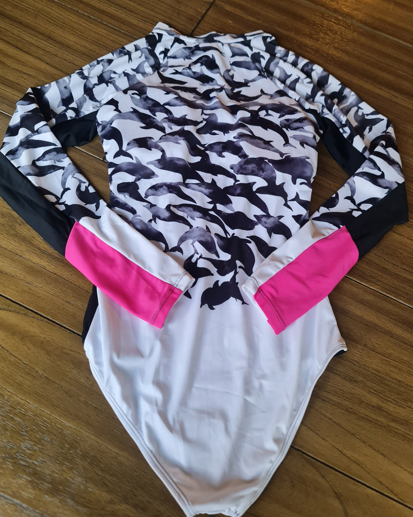 Traje De Baño Importado Lycra Gruesa Manga Larga Delfines